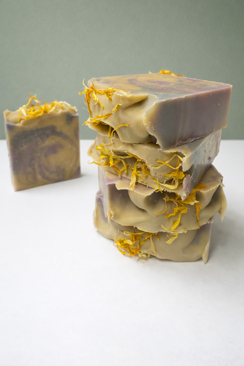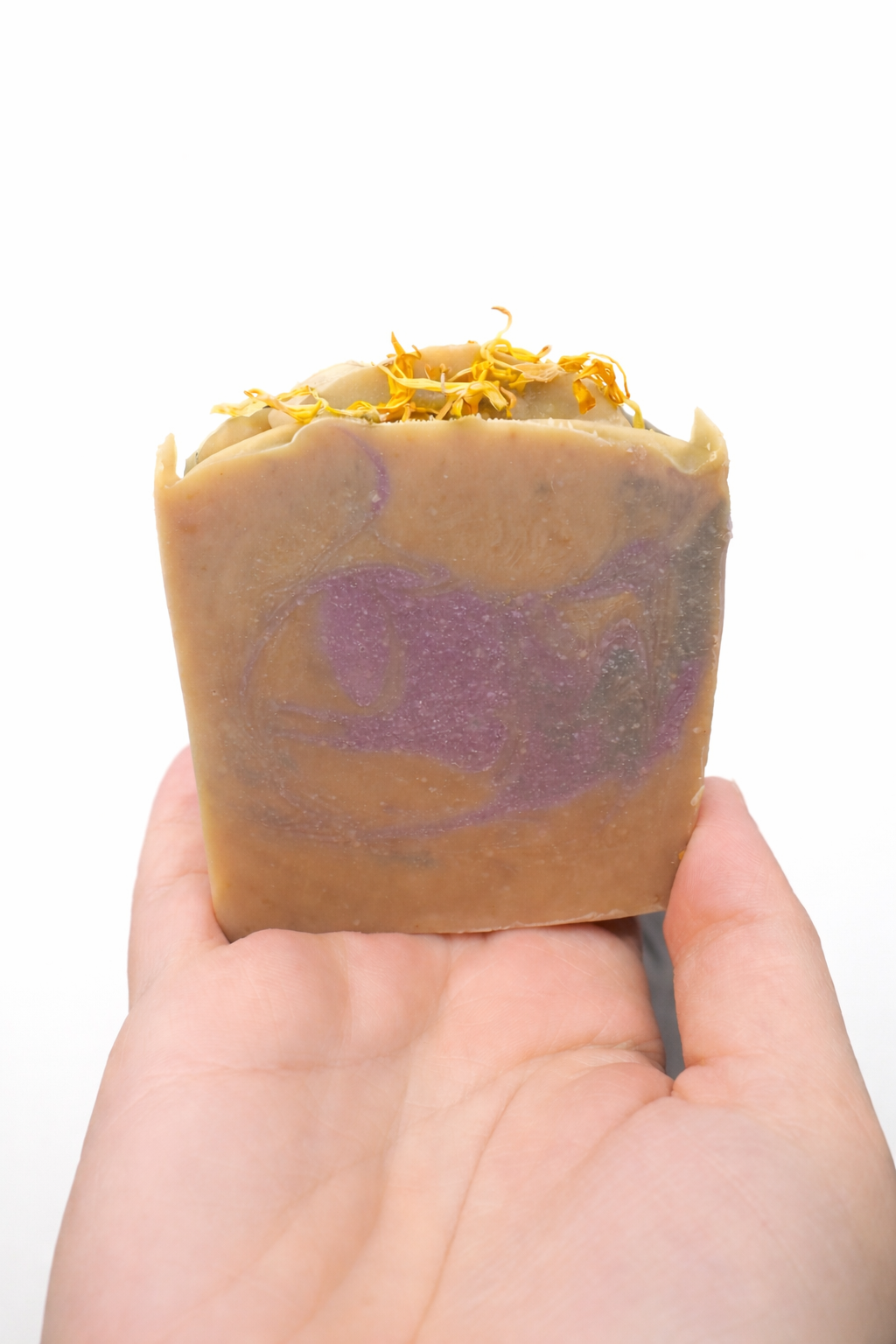 Colloidal oatmeal and kaolin clay add a soothing touch, while soft lavender tones and delicate marigold petals make each bar feel quietly beautiful.